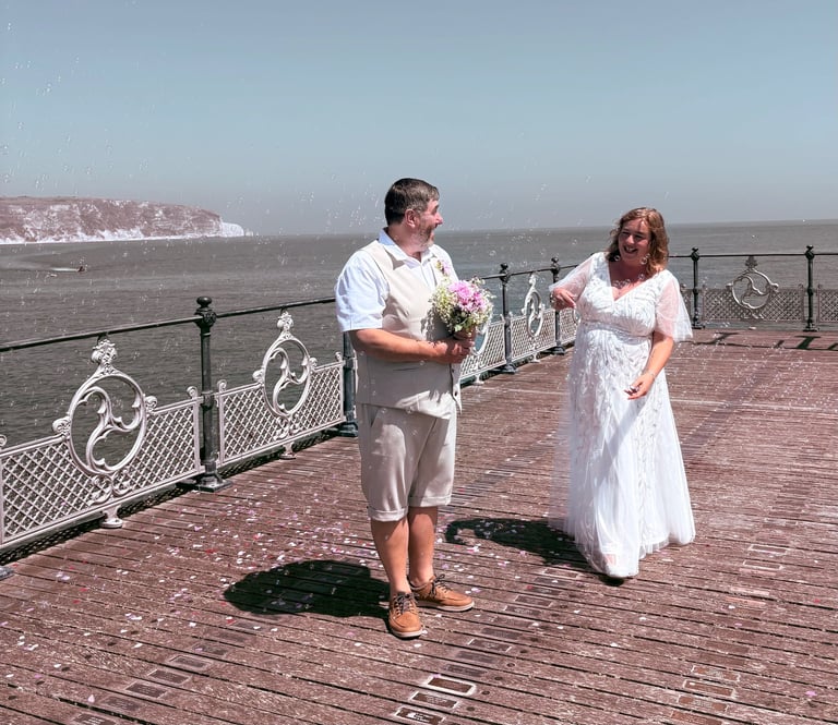 Jon and suzi chose to come to Dorset for there elopement. Having never been to Dorset the couple chose to have their elopement on Swanage pier and it was a lovely event.